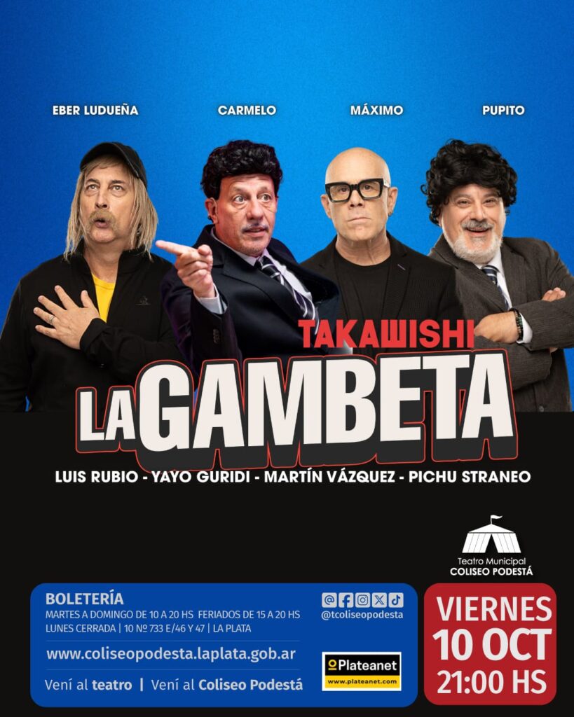 Este viernes 10, el actor Luis Rubio se presenta con LA GAMBETA -VERMOUTH DEPORTIVO junto a Yayo Guridi, Martín Vázquez y Pichu Straneo. El espectáculo se presenta en el Teatro Coliseo Podestá combinando comedia, sátira futbolera y emoción popular, promete una función que será una verdadera fiesta. Es la versión teatral del programa que se convirtió en culto en internet.