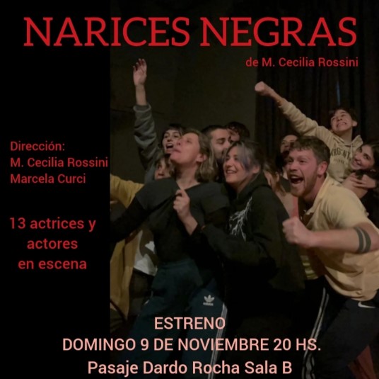 Rossini contó que la semilla de esta propuesta remite a su primera experiencia como actriz: “‘Narices Negras’ está inspirada en una obra que hice hace veinte años, apenas meses después de la tragedia, que se llamaba ´La memoria de los peces´. En ese momento sabíamos muy poco de lo ocurrido, pero queríamos acompañar desde el teatro la lucha por la verdad y la justicia”.