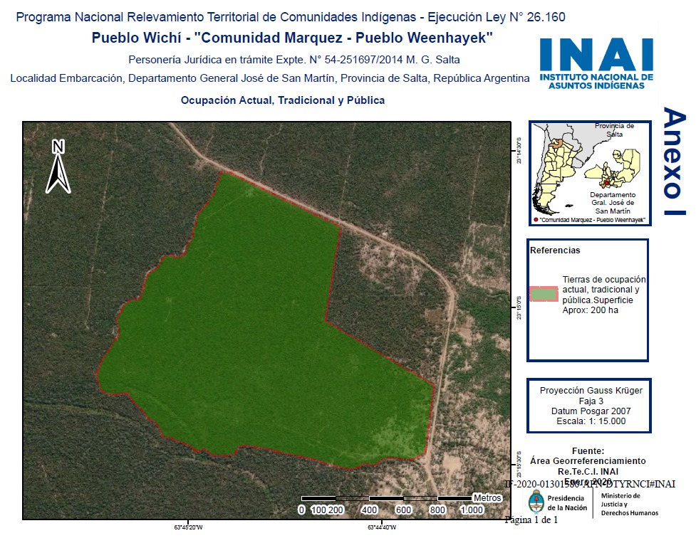 Conocida como Misión Chaqueña es una población wichí de alrededor de 2000 personas, ubicada al norte de la provincia de Salta, en el departamento Gral. San Martín, a 5 km del río Bermejo. Sus pobladores habitan históricamente el territorios, lo cual ha sido verificado y registrado por el Programa Nacional Relevamiento Territorial de Comunidades Indígenas – adjudicándole la personería jurídica en trámite según Expte. N° 54-251697/2014- según consta con la denominación formal "Comunidad Marquez - Pueblo Weenhayek".