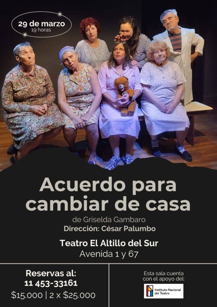 Con localidades agotadas, este domingo 5 de abril a las 19 se presentará una nueva función de “Acuerdo para cambiar de casa”, la obra de Griselda Gambaro que el Grupo de Teatro El Altillo lleva adelante en El Altillo del Sur Casa Teatro, en 1 casi 67.