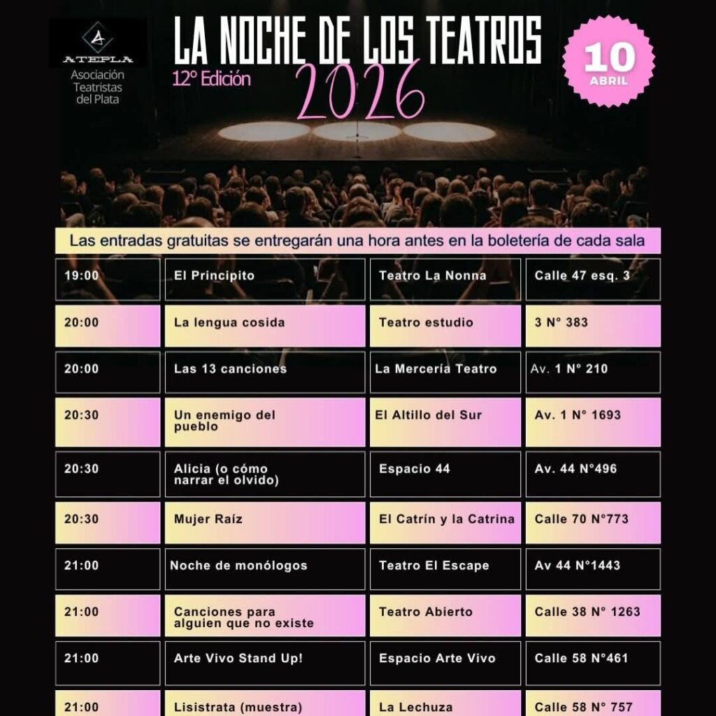 La nueva edición se realizará este viernes 10 de abril desde las 19. La Asociación de Teatristas del Plata celebra 12 años de una propuesta que busca ampliar públicos, visibilizar la escena independiente y defender el teatro como refugio, comunidad y política cultural.
