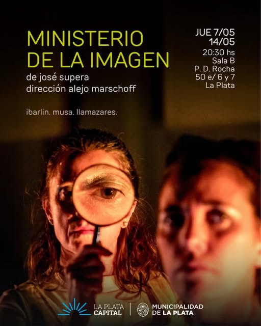 La obra “El Ministerio de la Imagen” vuelve a escena los jueves 7 y 14 de mayo a las 20:30 en la sala B del Pasaje Dardo Rocha, con un elenco integrado por María Ibarlin, Adriana Llamazares y Omar Musa. Con dramaturgia de José Supera y dirección de Alejo Marschoff, la propuesta combina actuación, recursos audiovisuales y una puesta estética que dialoga con el mundo contemporáneo.